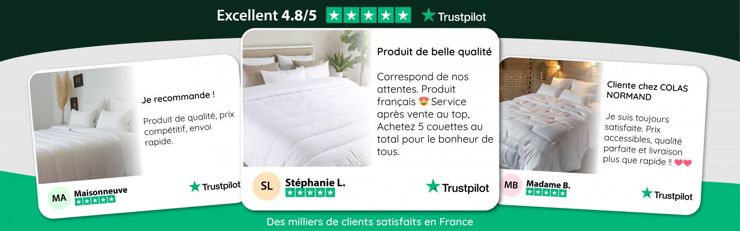 Colas Normand vous propose des produits pour tous les dormeurs : des couettes anti-acariens, des couettes en plume et duvet, des couettes et oreillers en coton bio, et même des oreillers à mémoire de forme. Choisissez les vôtres les yeux fermés (enfin… façon de parler) et dormez comme un bébé !