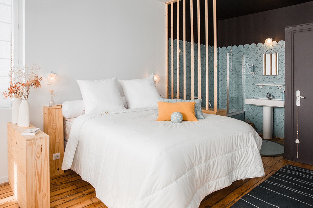 Colas Normand a mis au point sa couette spéciale couple, un modèle qui pourrait bien faciliter la vie (ou plutôt les nuits) de ceux qui dorment à deux. Cette couette d'hiver est séparée en deux parties : un côté possède un grammage de 350g/m², et l'autre côté contient 500g/m². Cette couette possède donc un côté chaud (mais pas trop), et un autre côté bien chaud.