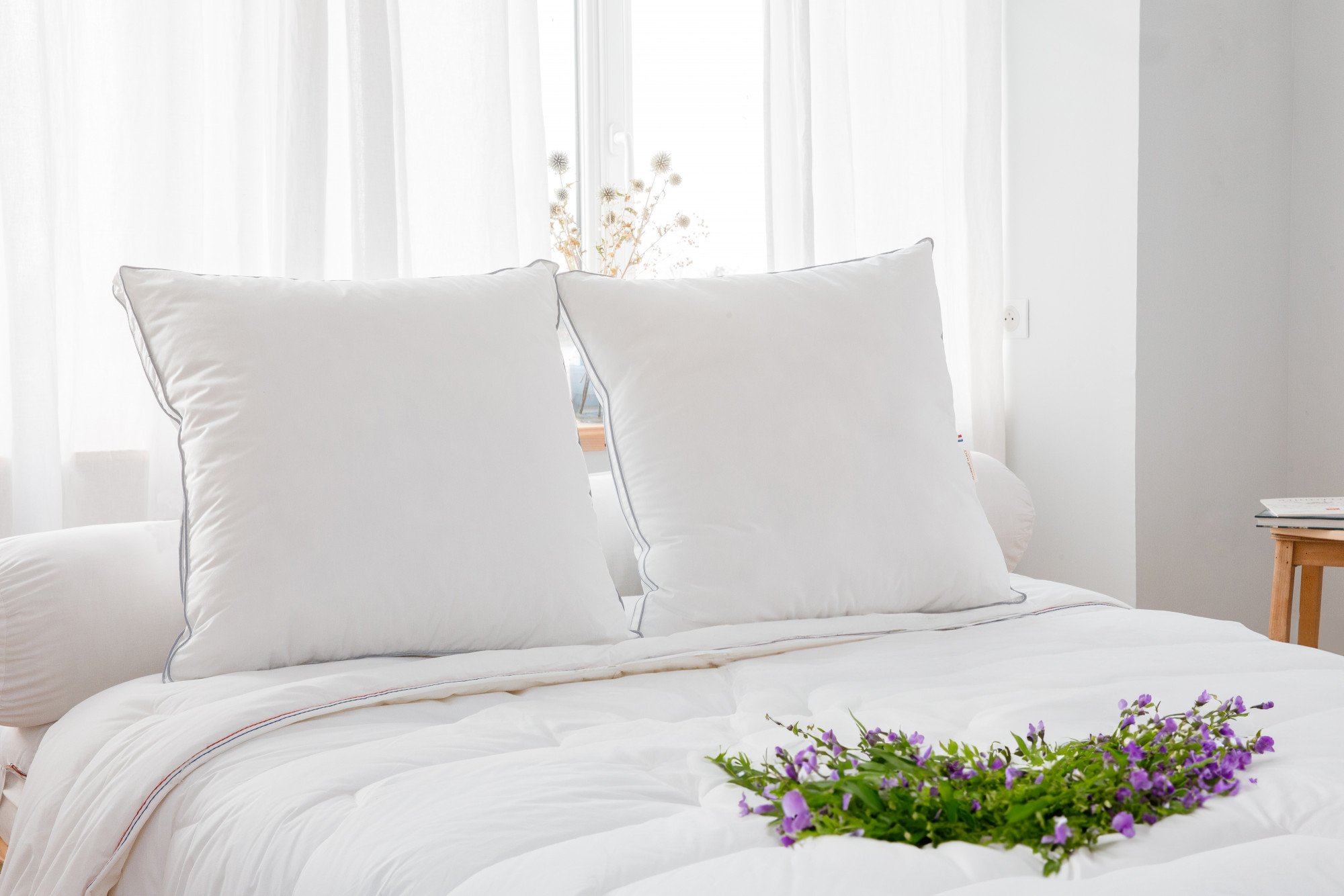 Si vous êtes à la recherche d'un oreiller de qualité et ferme, découvrez cet oreiller aux finitions soignées avec son double passepoil gris.
