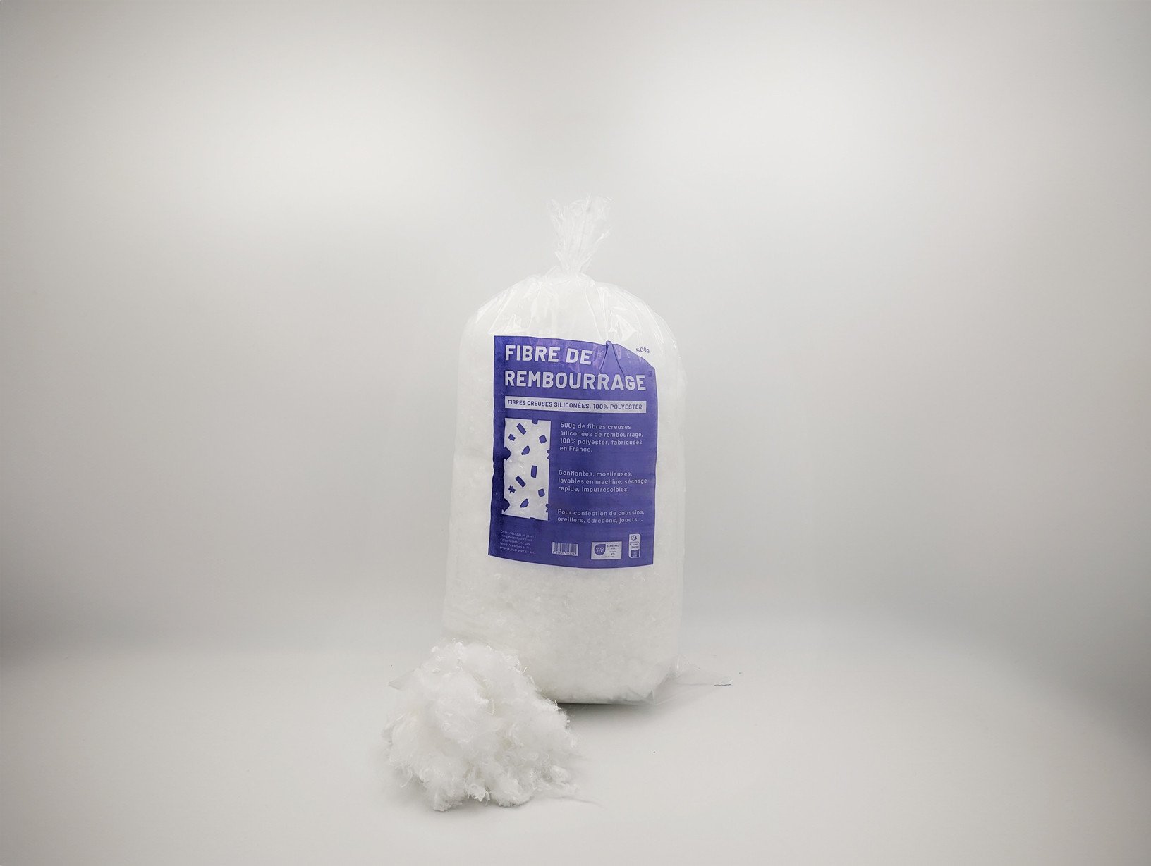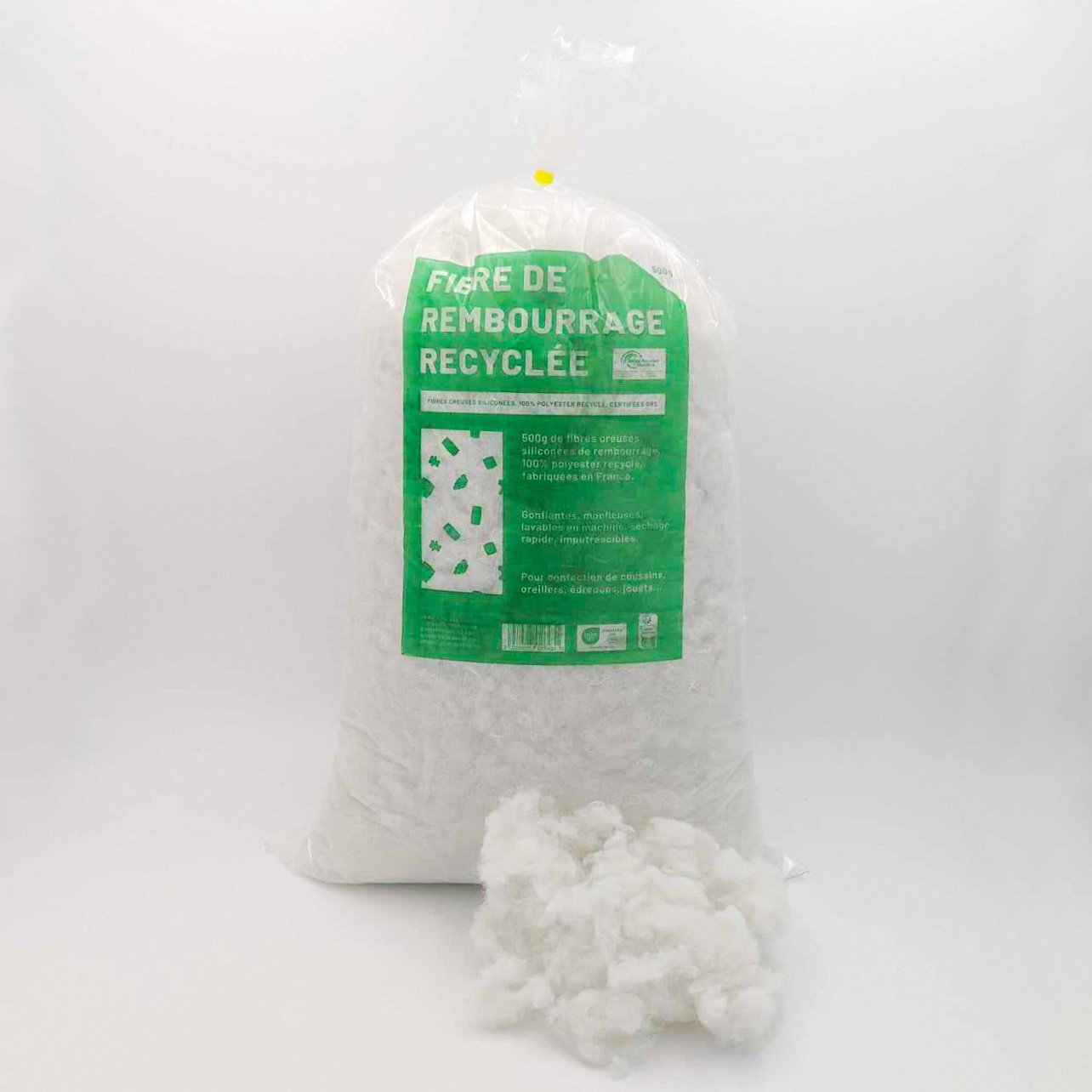 • Description : Notre fibre de rembourrage synthétique, disponible en sacs de 500 g et 1 kg, est l'allié idéal pour tous vos projets de rembourrage. Que vous souhaitiez redonner du gonflant à vos oreillers et coussins usés ou créer des peluches et poupées personnalisées, notre ouate de  polyester  creux siliconé répondra à toutes vos attentes. Existe également en fibre recyclée certifiée GRS.